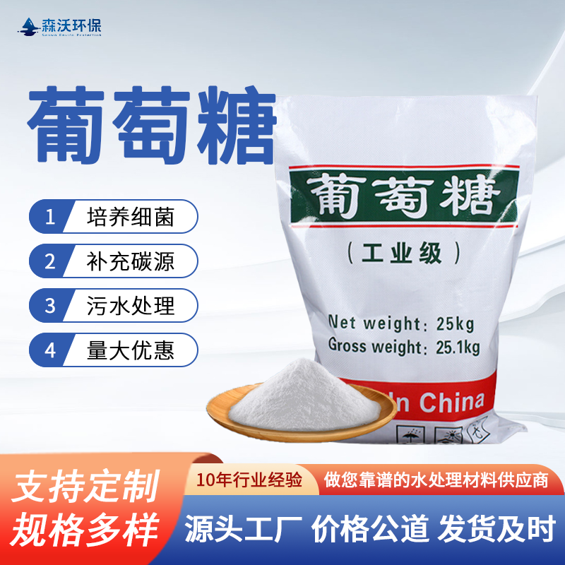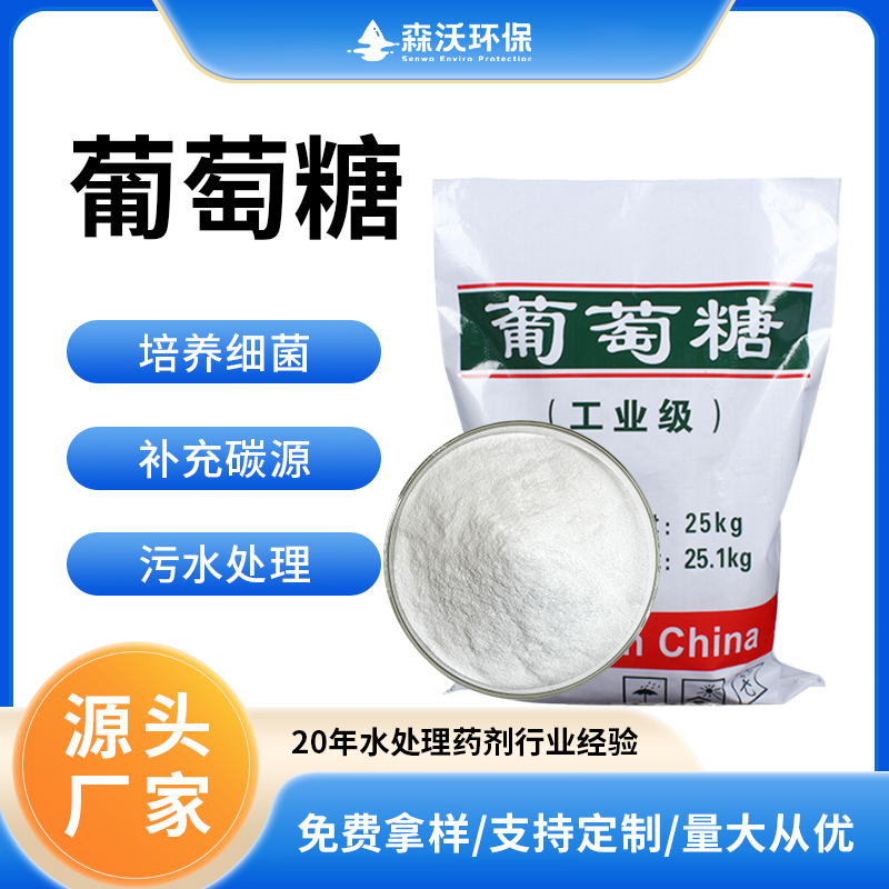 葡萄糖:污水处理调试期间投加葡萄糖等是为了提供碳源,这是为了更好的培养细菌,提高污水的可生化性。污水处理中作为污泥营养源,比尿素来得快,若运行的系统中COD、BOD不足以供给菌种生长繁殖的话,就需要另外投加,以防污泥老化,生物活性降低。葡萄糖具有明显的协调效应,适用于钼、硅、磷、钨、亚硝酸盐等各种配方,由于协调效应影响,缓蚀效果大大提高;葡萄糖与一般缓蚀剂相反,缓蚀率随温度升高而增加;葡萄糖阻垢能力技术要求对钙、镁、铁盐具有很强的络合能力,特别对FE有极好的螯合作用;葡萄糖作为循环冷却水缓蚀阳垢剂,是目前所使用的其他缓蚀阻垢剂所无法比拟的,可达到公害的作用。